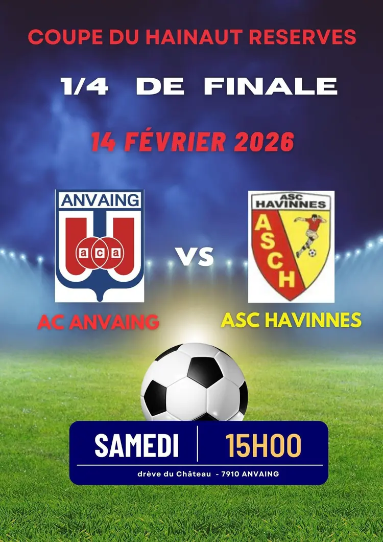 Ce samedi 14 février (15h) se déroulera le 1/4 de finale de la coupe du Hainaut pour notre équipe Réserves !