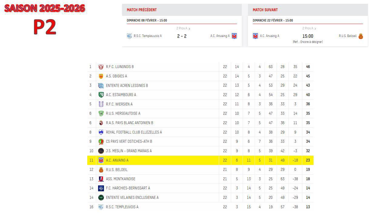 P2 : FC Harchies-Bernissart - ACA : 0-1.